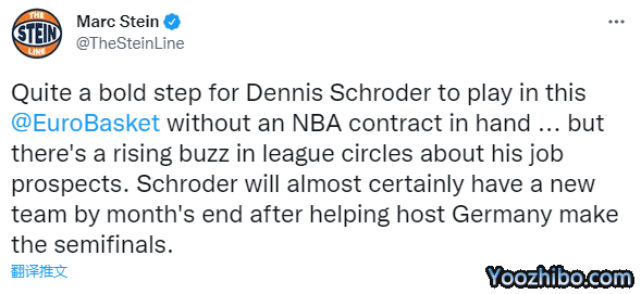 对于施罗德的出色表示,NBA名记Marc Stein直言施罗德很可能将在本月获得一份NBA合同,发推写道:施罗德在没NBA合同在手的情况下打欧锦赛真是很大胆的一步。但在联盟圈子里,关于他工作前景的讨论正越来越多。在帮助德国队打进半决赛后,施罗德几乎肯定会在本月底前加盟一支新球队。