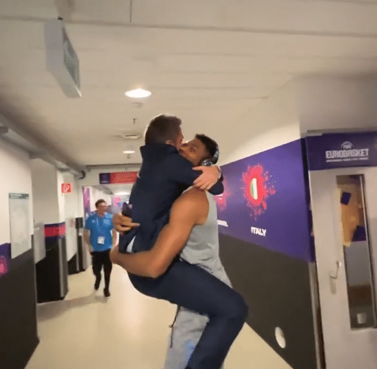 足球直播吧09月12日,男篮欧洲杯淘汰赛出现罕见一幕,意大利主帅被驱逐后哭了,晋级8强后,波切科情绪激动疯狂庆祝,在球员通道熊抱并且亲吻字母哥疯狂庆祝。