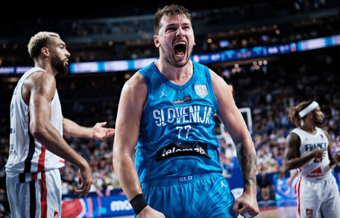足球直播吧09月08日讯 男篮欧洲杯如火如荼地进行着,斯洛文尼亚男篮88-82击败法国男篮锁定小组第一。这场比赛东契奇表现超神,他在上半场被对手肘击出血,但依旧坚持战斗,随后东契奇疯狂得分,面对实力强大的法国队,东契奇全场23投15中,三分11中6,罚球12中11,爆砍47分7篮板5助攻1抢断的数据。47分也超越了诺维茨基,创欧洲杯历史第二高分。