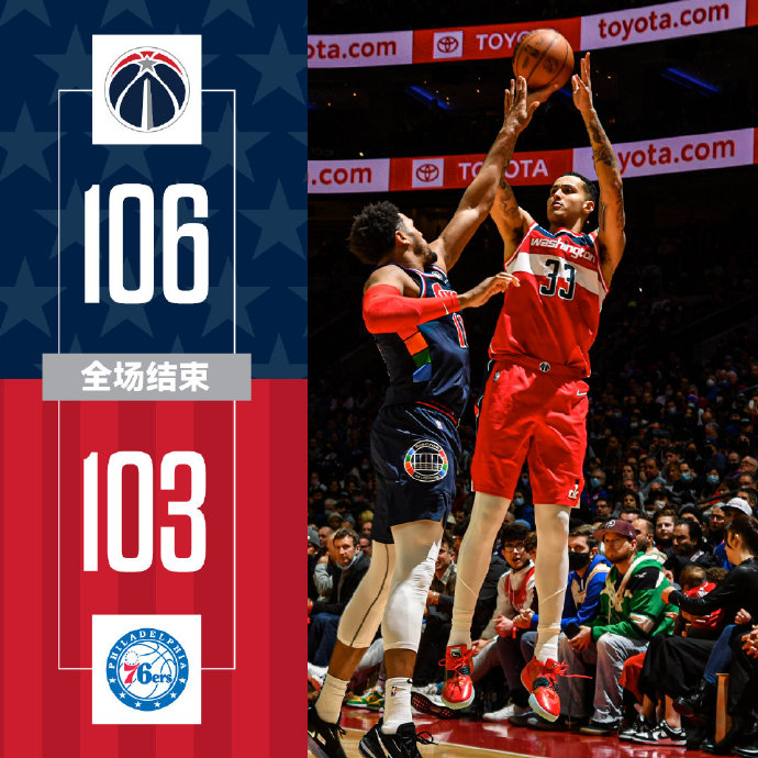 足球直播吧2月3日讯 NBA常规赛,76人主场迎战奇才。76人目前保持着东部最长的5连胜,球队排名也迅速升至东部第二。奇才已经遭遇了6连败,仅排在东部倒数第四。比尔继续因伤缺阵。一开场,双方难分伯仲,比分咬得很紧,马克西连得10分,奇才连中三分给出回应,首节结束奇才领先1分。次节比赛,奇才一波9-0将分差拉开到两位数,后半段76人回敬17-5的攻势扳平比分,半场战罢奇才59-54领先5分。易边再战,恩比德连得8分率队打出10-0的攻势,双方对飙三分,库兹马超远三分命中,奇才领先2分进入末节。第四节,双方争夺陷入白热化,比分咬得很紧。哈雷尔连得8分,库兹马完成关键封盖并抢到篮板,吉斯珀特罚球都有,格林三分续命,丁威迪罚球杀死比赛。最终,奇才力克76人,结束6连败的同时终结了对手的5连胜。