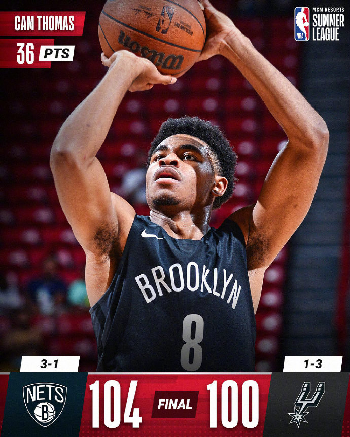 足球直播吧8月16日讯 NBA夏季联赛,篮网今日对阵马刺,前者已经取得两连胜,而后者在上场比赛才险胜黄蜂取得首胜。比赛上来马刺就展示了火热的外线手感,连续命中多记远投,而篮网的进攻效率则是极低,场上分差迅速就达到了两位数,次节篮网虽然多次发起追分,但半场结束时仍落后5分。易边再战篮网继续反扑,在第三节末段他们打出一波10-2的攻势终于实现反超,末节两队开始陷入拉锯,比赛悬念一直保持到了最后,关键时刻托马斯连续得分帮助篮网带走胜利,最终篮网险胜马刺,获得三连胜。