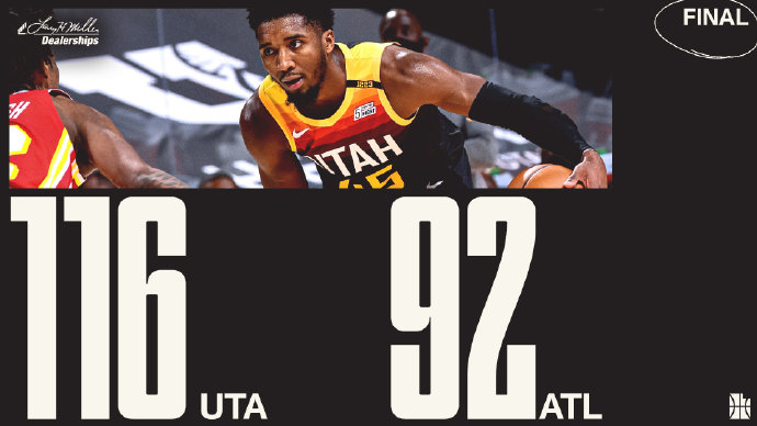 足球直播吧1月16日讯 爵士坐镇主场迎战老鹰,此役爵士外线手感火热,康利、米切尔和博格达诺维奇连中三分,早早就帮助爵士建立起两位数领先。之后卡佩拉和科林斯轮番冲击内线为老鹰追分,但是米切尔在次节再度开火连续命中三分,率领爵士抵挡住老鹰的追分势头,以61-46保持两位数领先结束上半场。易边再战,爵士延续着手感,米切尔、博格丹诺维奇和克拉克森再轮番轰进三分,多点开花的爵士进一步扩大领先,比赛悬念提前失去。最终,爵士兵不血刃地以116-92击退老鹰,取得4连胜。