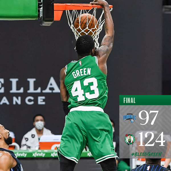 足球直播吧1月16日讯 NBA常规赛,凯尔特人今日迎战魔术,前者近来一波四连胜升至东部榜首的位置,而后者则是遭遇三连败排名东部第五,本场塔图姆缺战。比赛上来凯尔特人就率先进入状态取得领先,尽管塔图姆缺战,但布朗和普理查德表现不俗,半场结束时场上分差为12分。易边再战,凯尔特人完全占据场上主动,分差也突破了二十分,比赛早早就失去悬念,最终凯尔特人大胜魔术,迎来五连胜。