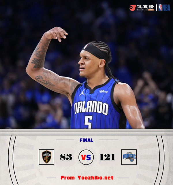 足球直播吧4月26日讯 NBA季后赛东部首轮G3,魔术回到主场迎战骑士,前两场比赛两队都是低比分,但是骑士最终都赢下比赛,目前2-0领先。比赛开始,魔术变阵并没有起到好的效果,骑士反客为主打出10-3不错开局,随后小瓦格纳、萨格斯和班凯罗接连外线发炮止血,最后3分钟骑士突然断电,魔术一波13-0一路举领先到双位数,次节小莫布里继续内线取分,勒韦尔也能贡献,但骑士整体进攻还是一般,安东尼和艾萨克接连三分,魔术又一波10-0直接领先到20分以上,米切尔终于能站出来止颓,半场魔术领先16分。下半场,魔术突然发力,萨格斯联手班凯罗里突外投连续取分,很快得分都上双,魔术顺势拉开30分以上领先,骑士彻底崩盘第三节输19分,末节双方直接换上替补练兵,魔术替补继续发力一度领先到40分以上,最终魔术121-83大胜骑士,总比分扳成1-2。
