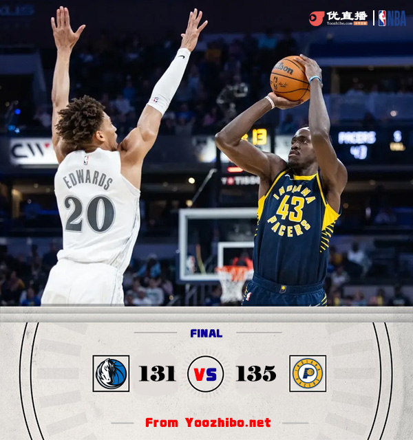 足球直播吧讯北京时间3月20日讯 NBA常规赛,步行者主场迎战独行侠,步行者目前38胜29负东部第4,独行侠3连败后33胜36负西部第10。本场比赛,除欧文和浓眉继续缺阵外,克莱也不打;哈利伯顿继续缺阵。比赛开始,双方上来状态比较慢热,内姆哈德和内史密斯一内一外带队建立主动权,西卡和内史密斯三分再进,步行者首节领先12分,次节双方展开精彩对攻战,托平再次成为奇兵接连外线发炮砍分,但华盛顿里突外投单节13分强势回应,步行者多点开花半场还领先11分。下半场,独行侠多点开花开始发力追分,丁威迪手感回暖单节上双,哈迪、马绍尔三节也都得分上双,西卡苦苦支撑,独行侠三节反超1分,末节独行侠继续全员发力扩大领先一度领先到双位数,内史密斯连续三分,马瑟林接连冲击内线,步行者12-3再次咬住比分,华盛顿连续罚球扩大到两球以上领先,最后时刻双方罚球大战,克里斯蒂失误后内姆哈德三分反超,哈迪致命进攻犯规,最终步行者135-131逆转独行侠,送4连败。