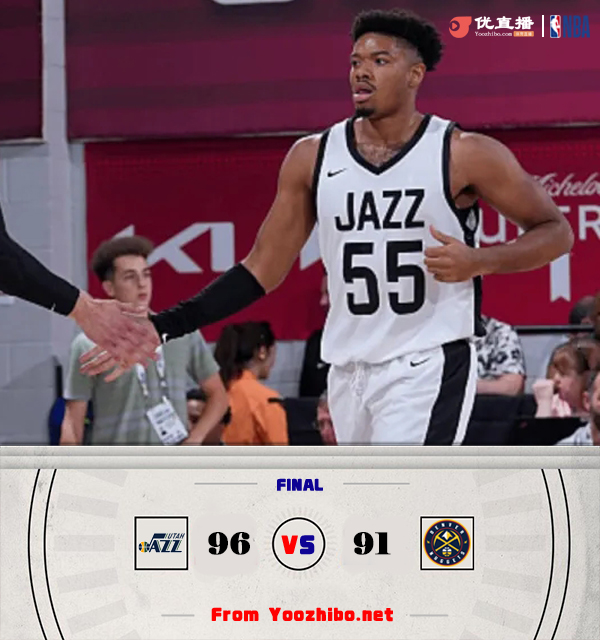 足球直播吧讯 7月13日 NBA夏季联赛继续进行,掘金和爵士两支西部球队正面对话,爵士阵中阿巴基和朱赞领衔出战,掘金这边,今年的29号秀斯特劳瑟引人关注。比赛开打后爵士连续冲击内线取分,掘金外线给予回应,中段爵士连中三分后拉开比分,末段掘金进攻依然滞涩,爵士延续火力继续扩大优势,首节结束时爵士已经领先14分,次节回来,爵士开局一波7-1后双方分差已经来到20分,随后掘金进攻稍有回暖,但爵士总能给予回应,半场战罢,爵士保持20分优势。易边再战后掘金继续追分,内外结合的他们不断打出得分高潮蚕食分差,阿尔曼-富兰克林压哨打进,三节结束后掘金仍然落后11分,末节上来,两队继续鏖战,双方外线火热对飚,爵士始终保持两位数左右优势,掘金逆转未果,最终爵士96-91力克掘金。