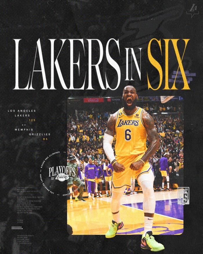 G6晋级之战,湖人上半场59-42领先17分打爆灰熊,上半场一度领先20分,下半场湖人第三节继续压制灰熊并且不断扩大领先,最终湖人125-85大胜40分拿下G6从而终结系列赛,总比分4-2成功黑七创纪录。