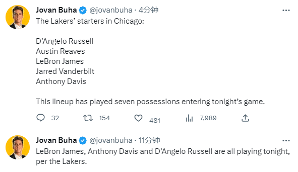 拉塞尔因臀部伤势缺席2场比赛后迎来复出,因为詹姆斯、浓眉和拉塞尔三大主力再次联手,自从拉塞尔重返湖人后,由于伤病的原因,19场比赛他们三人仅仅一起打了22分钟。