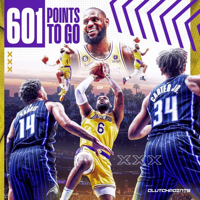 本赛季至今,詹姆斯场均上场35.8分钟,能够拿到27.8分8篮板6.6助攻1.1抢断,目前詹姆斯距离超越贾巴尔仅仅只差601分;若出战剩余全部常规赛,詹姆斯只需要场均12.5分就能加冕历史得分王;而本赛季詹姆斯场均至少拿到27分,大概需要23场就能超越贾巴尔。