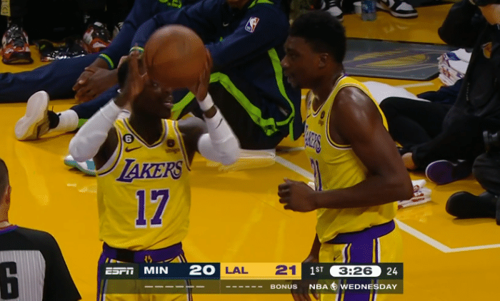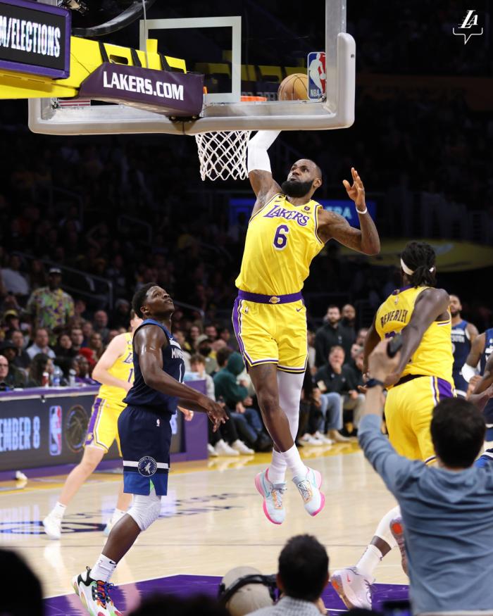 足球直播吧10月13日,NBA季前赛湖人主场对阵森林狼,首节威少和森林狼悍将发生有趣又充满火药味的一幕,两人都吃到技术犯规;詹姆斯单手劈扣点燃球馆,浓眉球裤破洞。