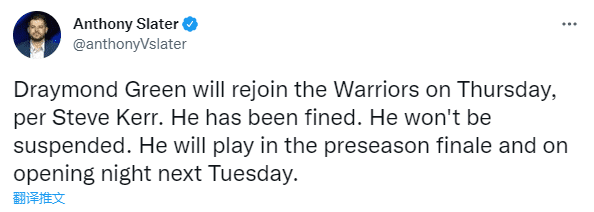 勇士对格林罚单曝光:被罚款但不会禁赛 追梦已和普尔会面周五归队