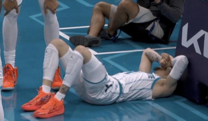 第三节8分多钟,黄蜂球星拉梅洛-鲍尔突破上篮时不幸扭伤左脚踝,受伤倒地十分痛苦;随后黄蜂官方宣布,三球本场比赛不会回归;伤退前,三球出战20分钟,投篮10中2,得到9分6篮板3助攻。