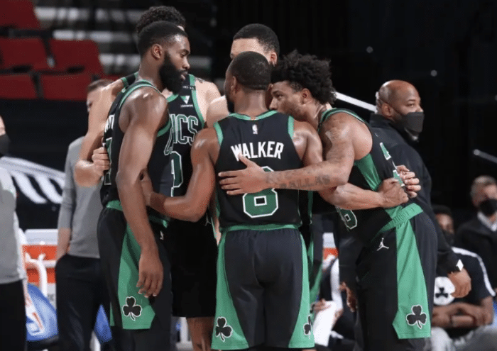 第三节的比赛开始后,格林24秒压哨三分命中,今天的比赛格林火力全开,布朗上篮命中回应,霍福德三分命中,库里三分命中回应,霍福德连中三分球,波特大空位三分也有,库里后撤步三分再中,随后库里超远三分再中,两队分差来到了22分,凯尔特人叫出了暂停,比赛有点花了。暂停回来后,罗伯特-威廉姆斯补篮得分,斯玛特超远三分命中,勇士叫出暂停。