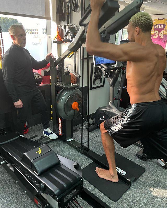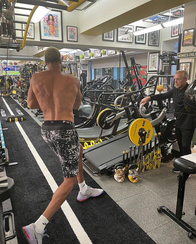 足球直播吧06月14日讯 ,爵士中锋鲁迪-戈贝尔更新社媒,晒出了自己的最新训练照。照片上的戈贝尔,已经染了一头金发,赤膊上阵,进行包括拳击在内的各项训练,硕大的肌肉格外抢眼。刚进入联盟时,戈贝尔还是一个看上去很瘦的中锋,力量和体重明显不足,经过几个赛季的苦练,如今的他已经越来越壮,俨然一个魔鬼筋肉人!戈贝尔晒照后不久,霍华德为他点赞。