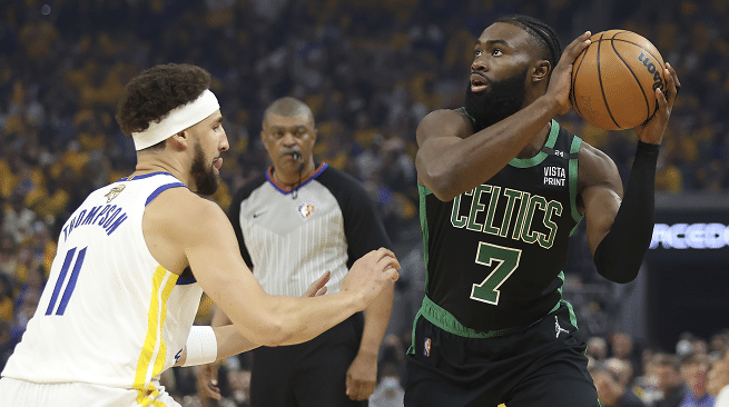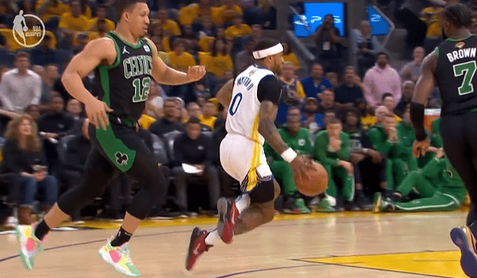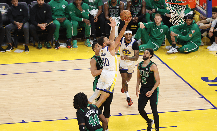 足球直播吧06月14日讯 ,NBA总决赛天王山之战,勇士开局表现非常强势,借助主场优势,他们开局就将优势拉大到两位数,维金斯、克莱和库里都有不俗发挥,追梦格林暴扣和上篮,救球也很拼。凯尔特人的杰伦布朗、斯马特、怀特用车轮战防守库里,他们第一节只得到了16分,球队本赛季季后赛首节新低,连续冲击内线,外线没有打开。上半场结束的时候,勇士领先凯尔特人12分。