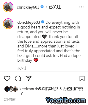 Chris Brickely在社交媒体上晒出生日派对照,配文写道:做任何事都要有一颗善良的心,不要期望任何回报,你永远不会失望 ,谢谢你们的爱和祝福,不仅仅是被爱,我还感到真正的感激,这是我收到的最好的生日礼物,过了一个超级兴奋的生日。