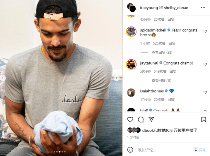 特雷-杨宣布第一个儿子出生!怀抱孩子满脸幸福 布克等球星祝贺他