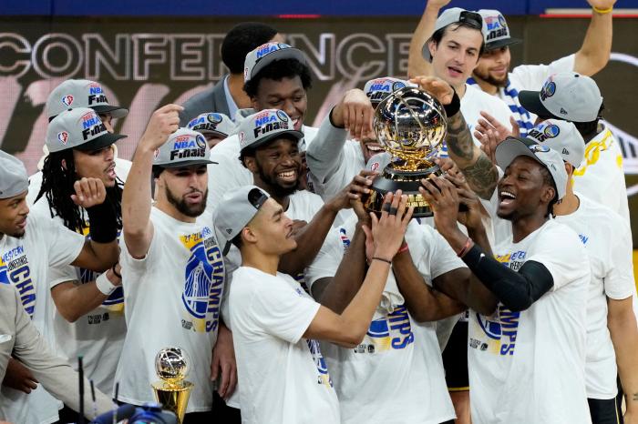 西决系列赛4-1淘汰独行侠,库里场均拿到23.8分7.4助攻6.6篮板,全票夺得西决MVP;生涯至今,库里已经6次带队杀进总决赛,此前5次总决赛之旅,库里带队夺得3座总冠军;今年库里将再次冲击生涯第一个总决赛MVP,说实在的,也该轮到库里圆梦了。