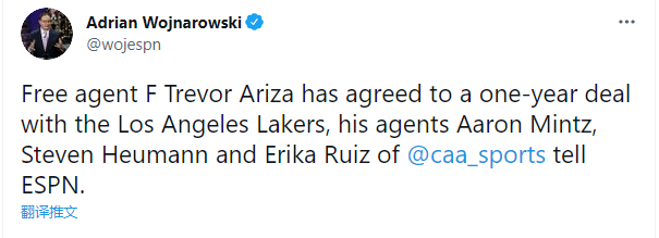 足球直播吧讯 北京时间8月3日,NBA自由球员交易市场开启后,湖人引援悍将阿里扎,据ESPN名记沃纳罗斯基报道,阿里扎已经同意和湖人签下一年合同;因此36岁的阿里扎重返湖人,他曾在09年帮助湖人夺得总冠军;之后湖人又签回霍华德,连签两大夺冠功臣。