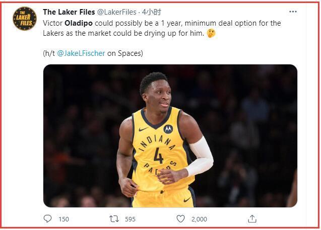 不过这还不是最疯狂的,最疯狂的消息莫过于昨天传出的“奥迪”奥拉迪波的消息,在此前步行者一度开出2000万+的续约合同,奥拉迪波没有同意,在火箭队,球队为这个场均20+的球员开出了2500万+的合同,可是奥拉迪波也没有同意,可是在昨天多家媒体爆出的消息,在遭遇了两次伤病之后,受伤前还能场均21分的奥拉迪波愿意以接受580万的中产合同加盟湖人,不得不说,这个消息太疯狂了,总冠军的诱惑也太大了。