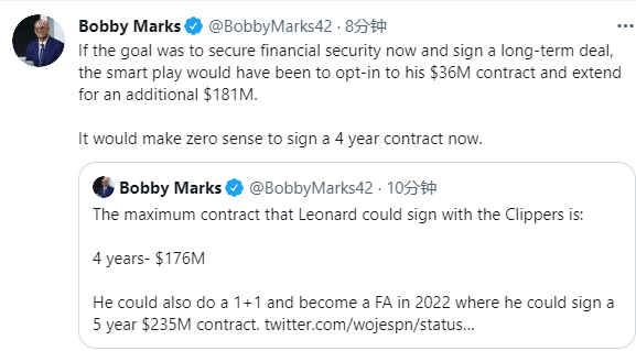 小卡已拒绝3600万!新合同细节曝光:可与快船续签4年1.76亿