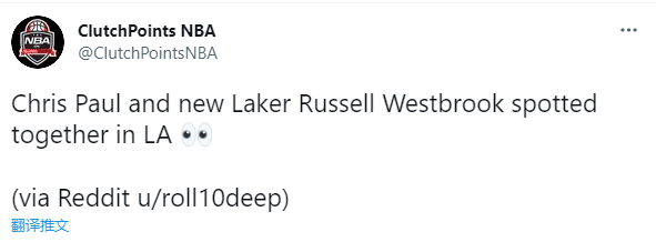 足球直播吧讯 北京时间8月2日,保罗和湖人新援威少会面引热议,美媒ClutchPoints NBA晒出两人见面的画面,发推写道:保罗和湖人球员威少共同现身洛杉矶街头。
