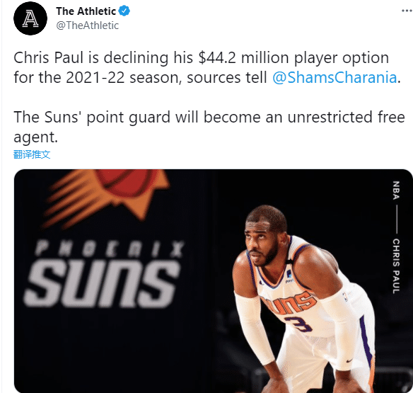 第一,保罗跳出合同,之后大概率和太阳新签一份3年9000万美元的合同。