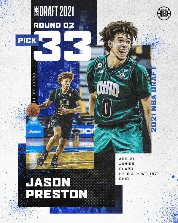 快船再送出未来次轮签和现金,把魔术用第33顺位选中的控卫杰森-普雷斯顿交易过来。