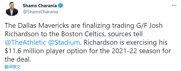 足球直播吧讯 北京时间7月31日,NBA又完成一笔交易达成,达拉斯独行侠把约什-理查德森交易到凯尔特人,理查德森已经执行了下赛季1160万美元的球员选项;独行侠1换0图什么?为引援做准备,很明显库班想要为东契奇找帮手,洛瑞便是他们的目标之一。