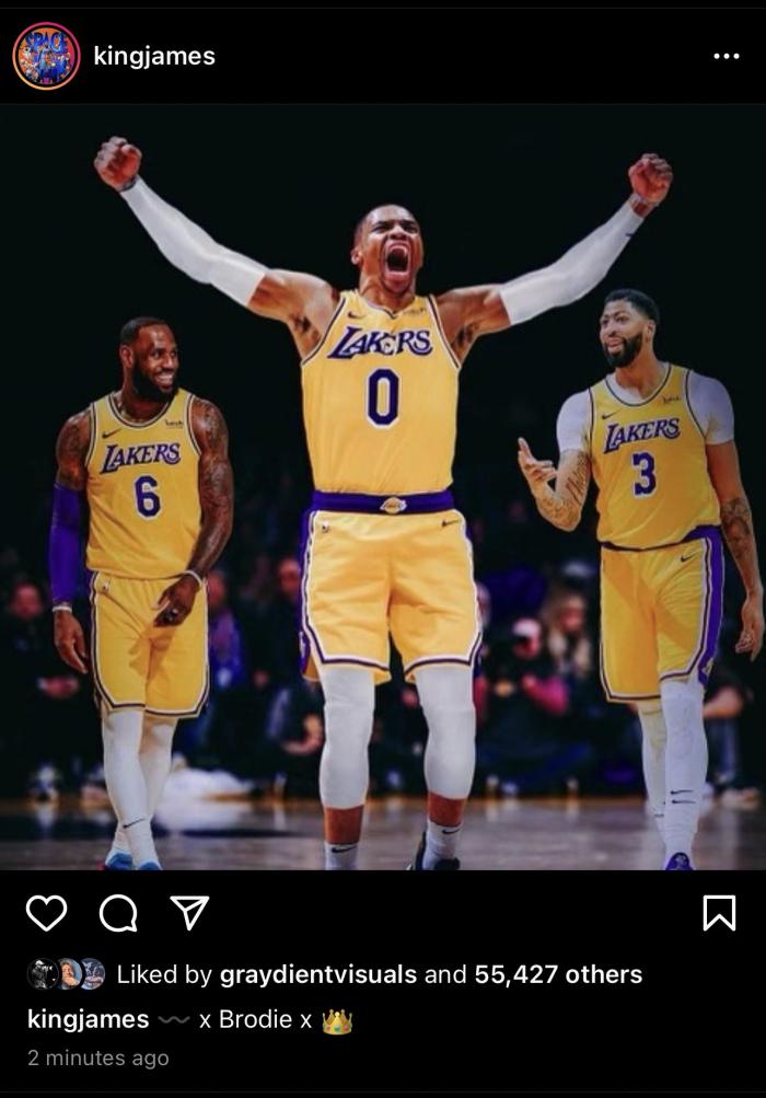 提前官宣!大交易后詹姆斯晒三巨头照:正式欢迎威少加盟湖人