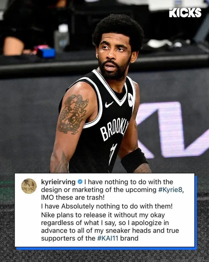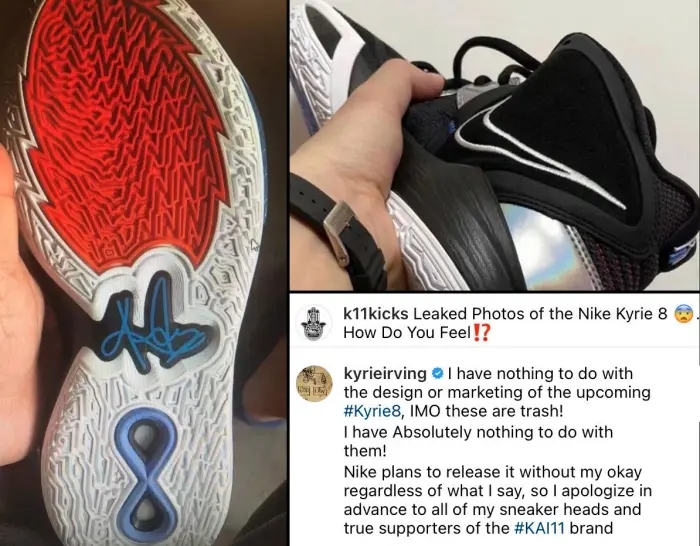 按理来说作为耐克签约的球星,应该会在各个场合赞美和推广自己的新鞋,毕竟人家给了你大合同,但欧文却相反,他公开炮轰“即将发售的#Kyrie8的设计或营销与我无关,在我看来这些都是垃圾!我和它们没有任何关系!无论我说什么,耐克都计划发售它们,所以我提前向我的所有鞋贩和#KAI11品牌真正的支持者们致歉。”