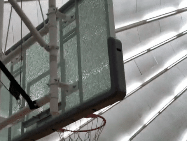 足球直播吧讯 北京时间7月26日,在亚特兰大举办的AEBL夏季联赛中,湖人球员哈雷尔一次大力双手扣篮,竟然把篮板扣碎了!球迷调侃哈雷尔简直是奥尼尔附体,由于现在篮板材质和以往不同,哈雷尔的这次扣篮,并没有达到奥尼尔扣篮后彻底粉碎落地的效果,但镜头显示,篮板的有机玻璃已经全部呈“碎裂”状态。
