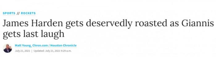 垃圾哈登!休城媒体借字母哥夺冠开喷:没带队能力,该得到应有的嘲讽!