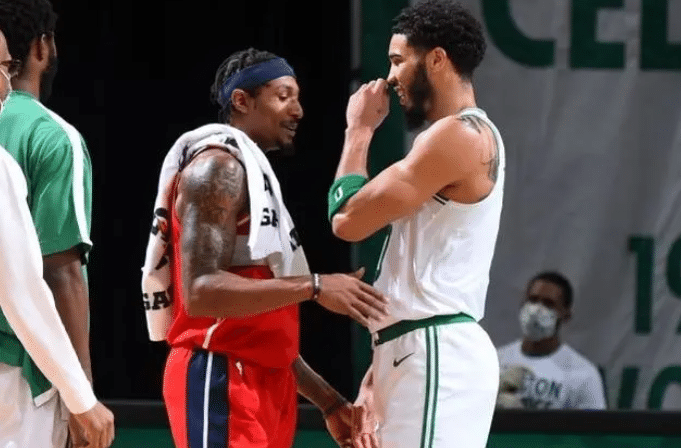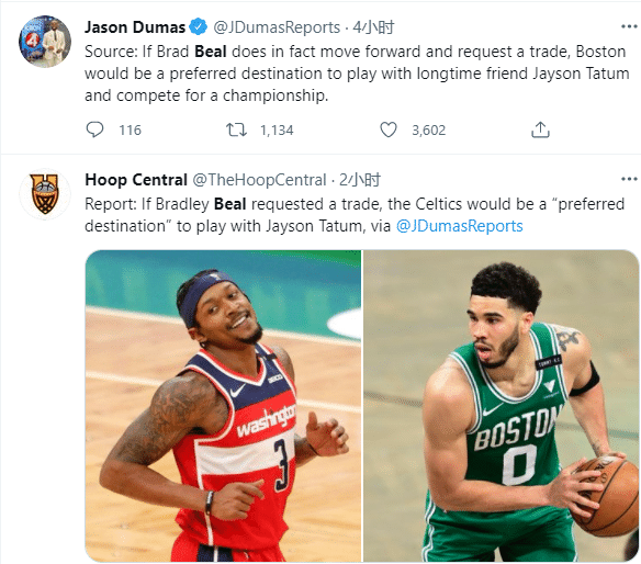 目前比尔正在考路自己的未来,虽然他曾多次公开表态不会离开奇才,但如今关于他计划申请离队的消息已经传开了,名记Jason Dumas跟进报道,若比尔确实申请交易,前往波士顿与好朋友杰森-塔图姆打球并争取总冠军将是他的首选。