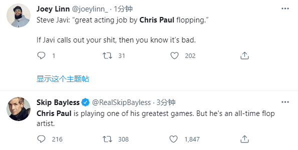 名记以及名嘴纷纷质疑保罗假摔,快船现场球迷更是狂骂保罗垃圾。