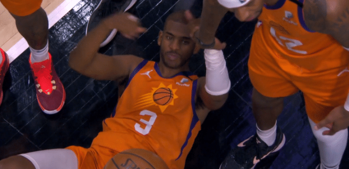 足球直播吧讯北京时间7月1日,太阳和快船系列赛第六场,场上多次出现争议判罚,第三节保罗疑似假摔引争议,造考辛斯吃到技术犯规,对此考辛斯一脸无奈,甚至翻白眼表达内心的不满情绪;末节保罗统治比赛,打得贝弗利输急眼,背后怒推保罗被驱逐离场。