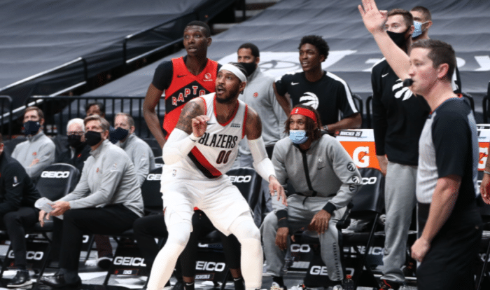 足球直播吧1月12日讯 北京时间1月12日,猛龙背靠背客场挑战开拓者,在这场比赛中,猛龙最多的时候一度取得17分领先,但他们在第四节被开拓者打出36比25的比分惨遭逆转!最后时刻,麦科勒姆艺高人胆大,单打范弗利特命中高难度后仰跳投帮助球队取得反超,此时留给猛龙9.6秒时间,但西亚卡姆单打考文顿无果,最终开拓者112比111险胜猛龙!