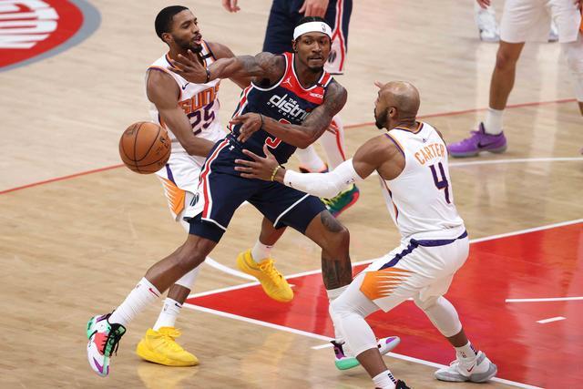 足球直播吧1月12日讯 NBA常规赛继续进行,韦少因伤休战,奇才主场爆冷大胜太阳,联盟倒数第一屠杀西部第二,奇才全场都把太阳按在地板上摩擦,湖人躺赢稳坐西部第一;NBA本赛季得分王比尔又打疯了,21投12中狂砍34分9助攻8篮板,正负值+29,赛季至今联盟只有比尔一人场均得分30+,力压哈登成联盟得分王,比尔拒绝空砍带队拿到主场首胜。