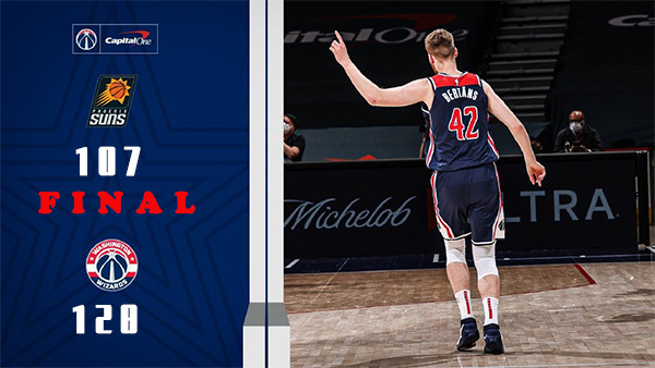足球直播吧讯:北京时间1月12日,2020-21赛季NBA常规赛继续进行,奇才队在主场迎战太阳队。最终,奇才队在主场以128-107战胜太阳队。