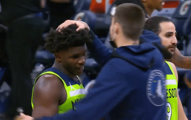 爱德华兹面对防守一个加速便完成突破,不过面对空篮,爱德华兹似乎想到了此时球队落后3分。于是他放弃了到手的2分,将球往外传。结果阿尔德里奇准确判断,完成抢断。森林狼球员瞬间有些蒙圈,在还剩4秒的情况下,全队都定在原地。主帅桑德斯在场边手舞足蹈要队员们犯规,可惜时间已经没了。其实爱德华兹完全可以先将球放进,因为当时还有7秒左右,森林狼还有暂停。