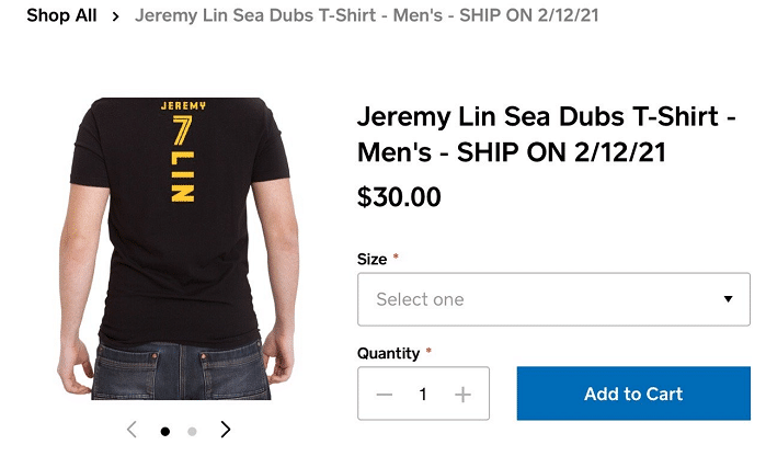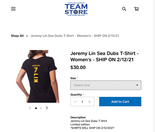 这次圣克鲁兹勇士官宣了林书豪加盟,很快勇士官方就上线了林书豪的球衣,上面的号码正如林书豪说到的一样,就是7号。分为男款和女款,价格都是30美元。