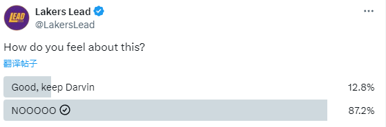 湖人媒体发起一项是否解雇哈姆的投票活动,到目前为止,1728人投票,有87.2%人希望湖人解雇哈姆,只有12.8%的球迷力挺哈姆继续执教。