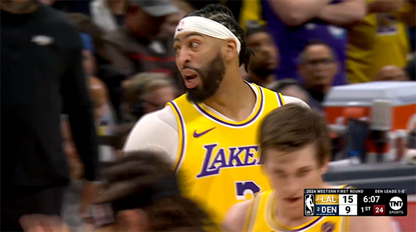 足球直播吧讯 北京时间4月23日,NBA季后赛湖人和掘金G2正式开打,湖人首节一度领先11分,詹姆斯3投2中拿到5分2篮板2助攻,戳到手指仍拒绝下场,浓眉5中4拿到10分5篮板,拉塞尔4中3拿到9分2篮板2助攻;约基奇首节4投3中拿到10分10篮板,带队反扑追到4分。