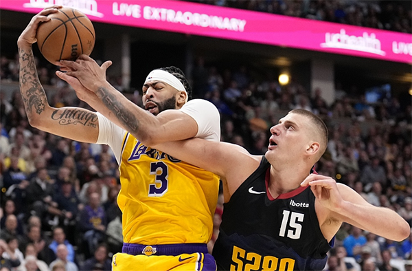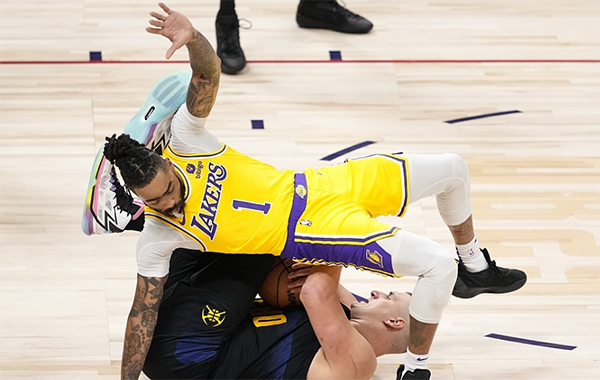 湖人G1惨遭掘金逆转,G2关键一战,浓眉的状态火爆,第一节打满12分钟,5投4中独砍10分5篮板,进攻端和约基奇对飚,再加上拉塞尔开场连中3记三分以及詹姆斯拼命防守,湖人首节占上风。