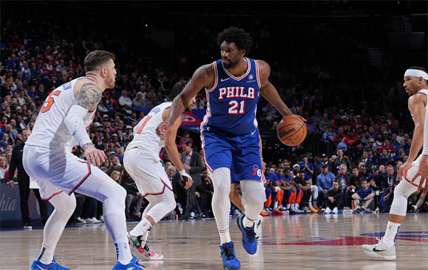足球直播吧讯 北京时间4月26日,NBA季后赛76人主场125-114击败尼克斯,把总比分改写成1-2,恩比德打出疯狂一战,全场19投13中、三分7中5、罚球21中19狂砍50分8篮板4助攻,上半场因恶犯拉倒对手引争议;第三节独砍18分大爆发,下半场独砍33分带队主场拿下G3,拒绝0-3落后。