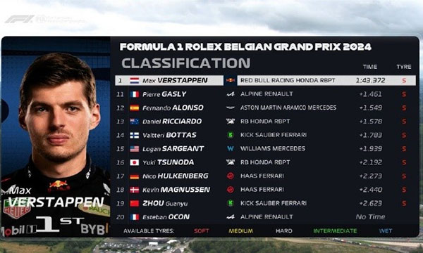 • 【赛事名称】: 07月27日 2024F1比利时大奖赛排位赛 全场录像回放