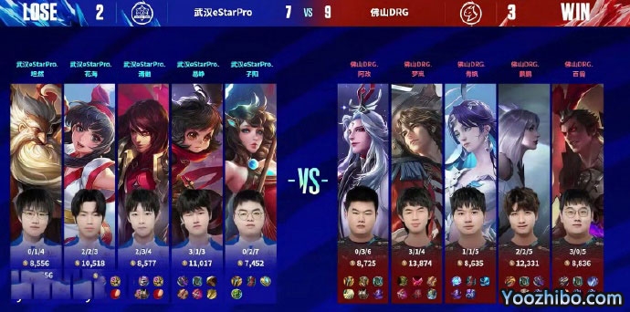 足球直播吧讯 北京时间4月16日,2023KPL春季赛今日第三场比赛是由武汉eStarPro对阵到佛山DRG!最终,佛山DRG 3:2 武汉eStarPro。