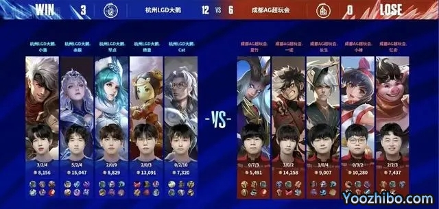 足球直播吧讯 北京时间03月24日,在KPL第二场比赛中,成都AG超玩会以0-3的比分不敌杭州LGD大鹅,本赛季苦吞五连败,虽然KPL联赛官方还没有出公告,但成都AG已经确定B/A卡位赛了,还有所谓的理论出现机会可以忽略不计。
