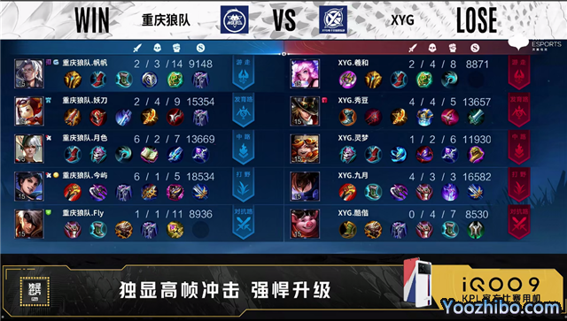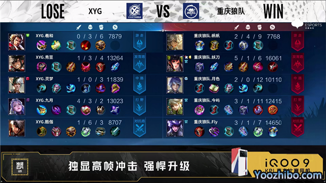 开局XYG对抗路、发育路换线。3分46秒重庆狼队拿下暴君。4分41秒XYG摧毁敌方发育路外塔。5分16秒XYG摧毁敌方对抗路外塔。5分25秒XYG拿下先知主宰。7分33秒XYG摧毁敌方发育路二塔。7分45秒中路团XYG打出1换2。8分40秒野区团XYG打出0换5团灭对手。9分17秒XYG拿下暴君。9分26秒XYG摧毁敌方中路外塔。10分14秒中路团重庆狼队打出0换2。10分21秒XYG摧毁敌方对抗路高地塔。10分53秒重庆狼队拿下暗影主宰。10分58秒重庆狼队中路击杀猪八戒。11分03秒XYG拿下暗影暴君。12分11秒XYG摧毁敌方中路二塔。12分20秒野区团重庆狼队打出0换2。13分10秒重庆狼队摧毁敌方中路外塔。15分25秒重庆狼队拿下暗影暴君。15分40秒暗影主宰处团重庆狼队打出2换4。16分53秒重庆狼队野区击杀澜。17分32秒重庆狼队摧毁敌方发育路二塔。18分16秒重庆狼队摧毁敌方对抗路二塔。19分钟重庆狼队对抗路击杀猪八戒。19分30秒重庆狼队拿下暗影暴君。20分05秒重庆狼队摧毁敌方中路高地塔。21分10秒重庆狼队拿下风暴龙王,团战重庆狼队打出1换4。21分43秒重庆狼队摧毁水晶拿下比赛。
