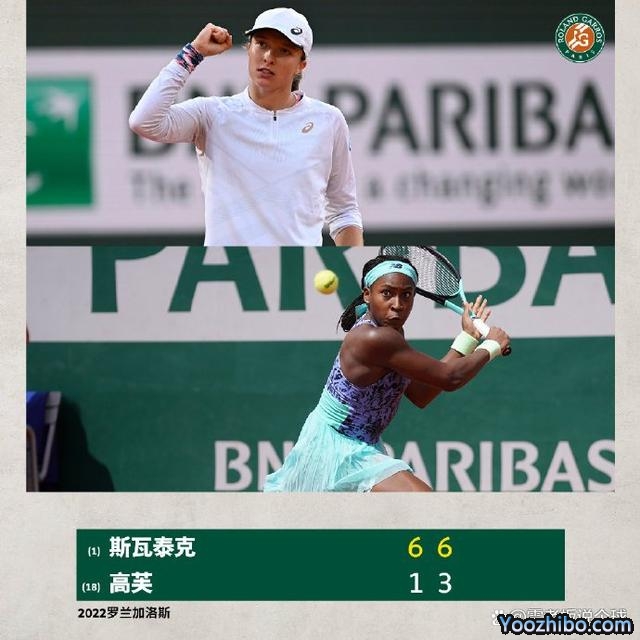 第二盘比赛由斯瓦泰克率先发球,她的反手连续失误送出2个破发点,侧身正手打丢送出发球局,顶住压力保发之后建立起2-0的领先优势。第3盘斯瓦泰克顶住对手反扑保发得手,随后利用高芙正手反斜线失误实现回破,连拿4分保发之后3-2反超比分。第6局斯瓦泰克接发球制胜分拿到2个破发点,网前抽球迫使高芙救球失误兑现,稳稳保发之后将比分优势扩大到了5-2。第8局高芙依靠发球直接得分保发,止住了连丢5局的颓势,但是斯瓦泰克还是在自己的发球局里40-15率先拿到2个赛末点,兑现之后以6-3的比分再下一盘,大比分2-0完胜高芙,拿下了职业生涯的第二个大满贯女单冠军。